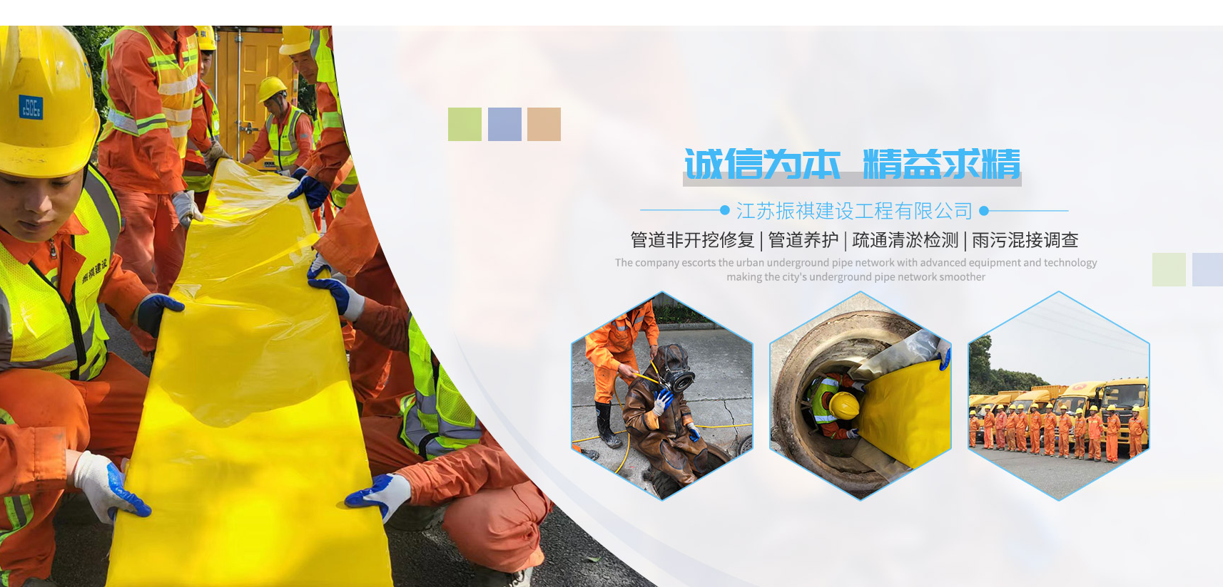 江苏振祺建设工程有限公司是主要从事地下管网非开挖修复、管道CCTV检测、管道潜望镜(QV)检测、管道疏通、市政工程、环保工程等工程服务的高新技术企业。公司的主要业务范围:地下管网非开挖修复、管道养护、疏通清淤检测、雨污混接调查、污水零直排普查等工程项目服务、水下作业、地理信息系统建立全覆盖服务。公司从欧美国家引进了优异的施工工艺和设备,同时培养了一批专业技术人员;公司以优异的设备和技术为城市地下管网保驾护航,使城市的地下管网更通畅,让城市的景色更美好!